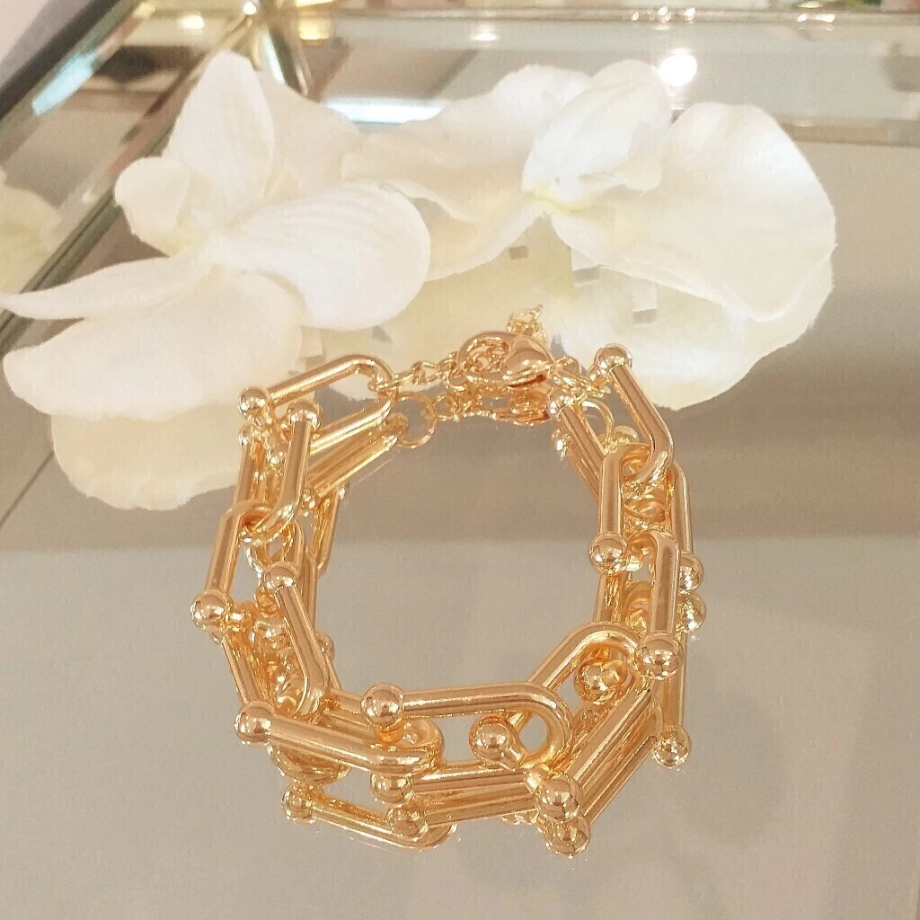 Pulseira inspiração de elos de joalheria de luxo.Semijoias banhadas em ouro 18k e verniz especial de proteção.