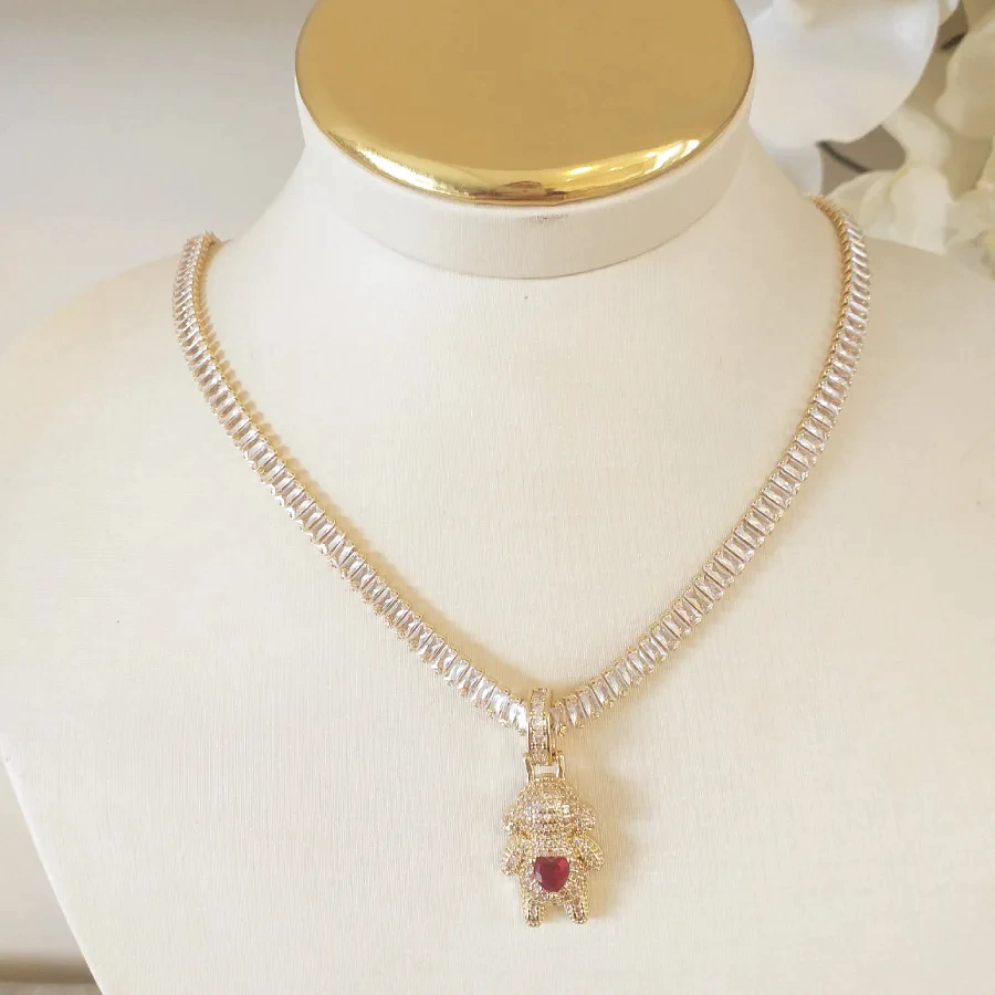 Riviera Personalizada em zircônia com pingente de menina Coração rubelita.