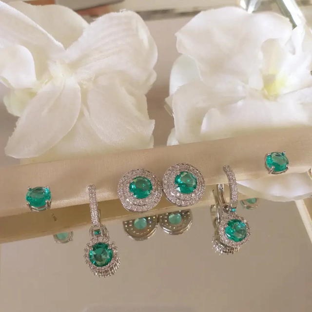 Trio de brincos de esferas cravejadas em zircônias turmalina banhada em ródio