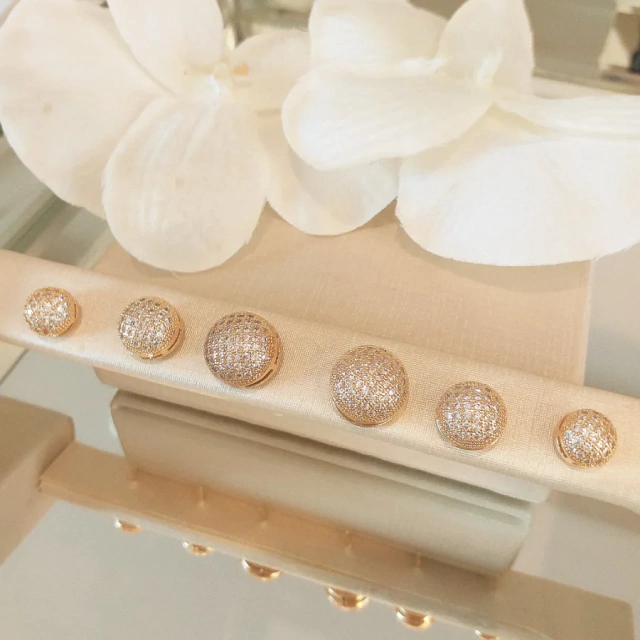 Trio de brincos de bolinha microcravejada banhada em ouro 18k